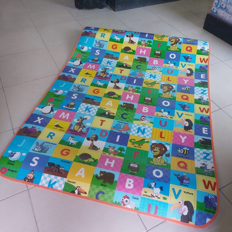 Este tapete es una buena opción ya que puedes dejar a tu bebe sobre el mientras juega o incluso aprende ya que cuenta con doble vista un es el alfabeto y por el otro lado con un dibujo interactivo. es impermeable así que sera más fácil de limpiar.